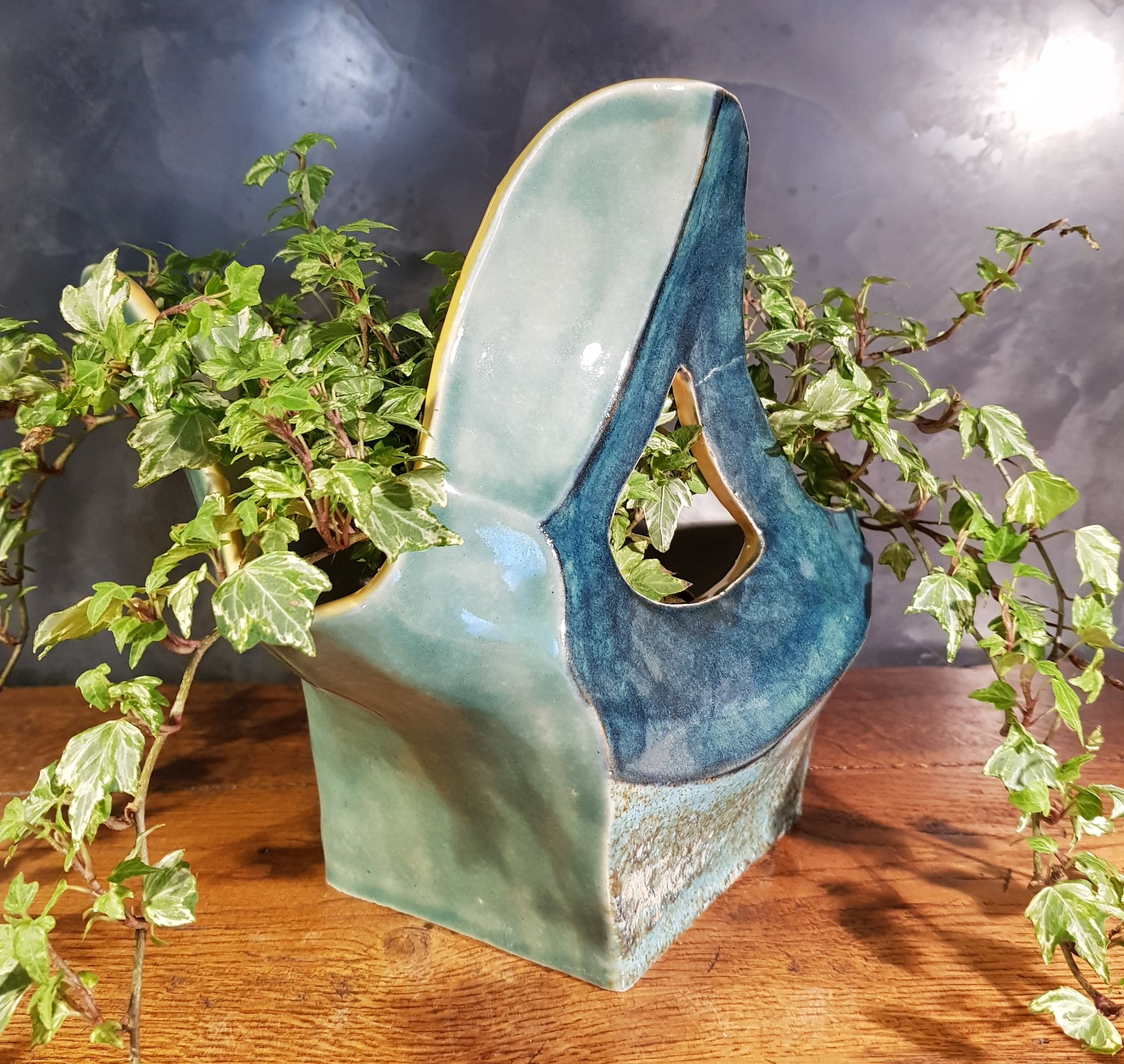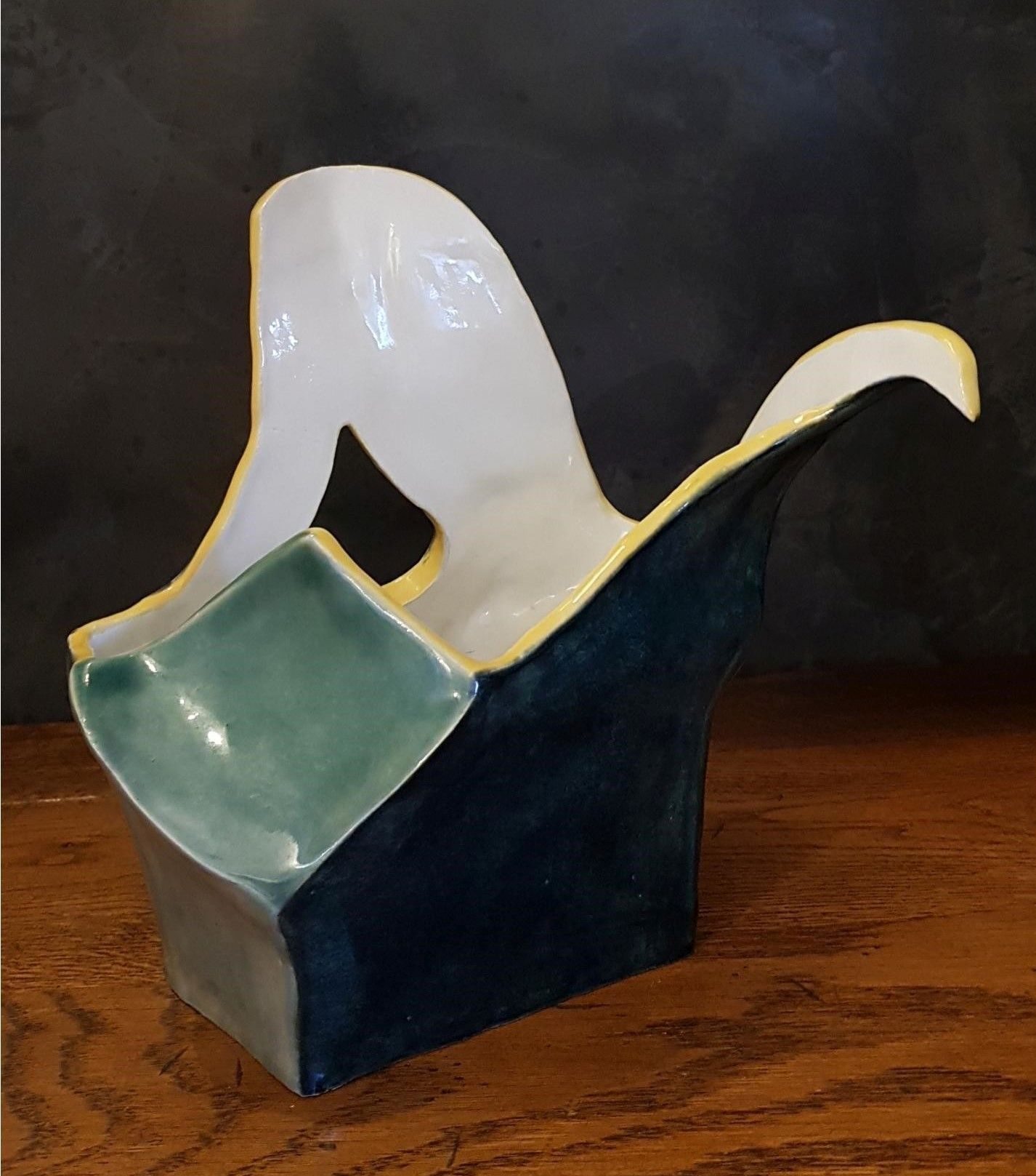Übertopf Balthasar wurde in Plattentechnik aus weißem glatten Ton gefertig und voll glasiert. Man kann ihn als Übertopf verwenden oder einfach als Dekoobjekt. Da die Glasur lebensmittelecht ist, kann man ihn auch als Schale für Obst verwenden. Er ist bei 1240 Grad zu Steinzeug gebrannt.