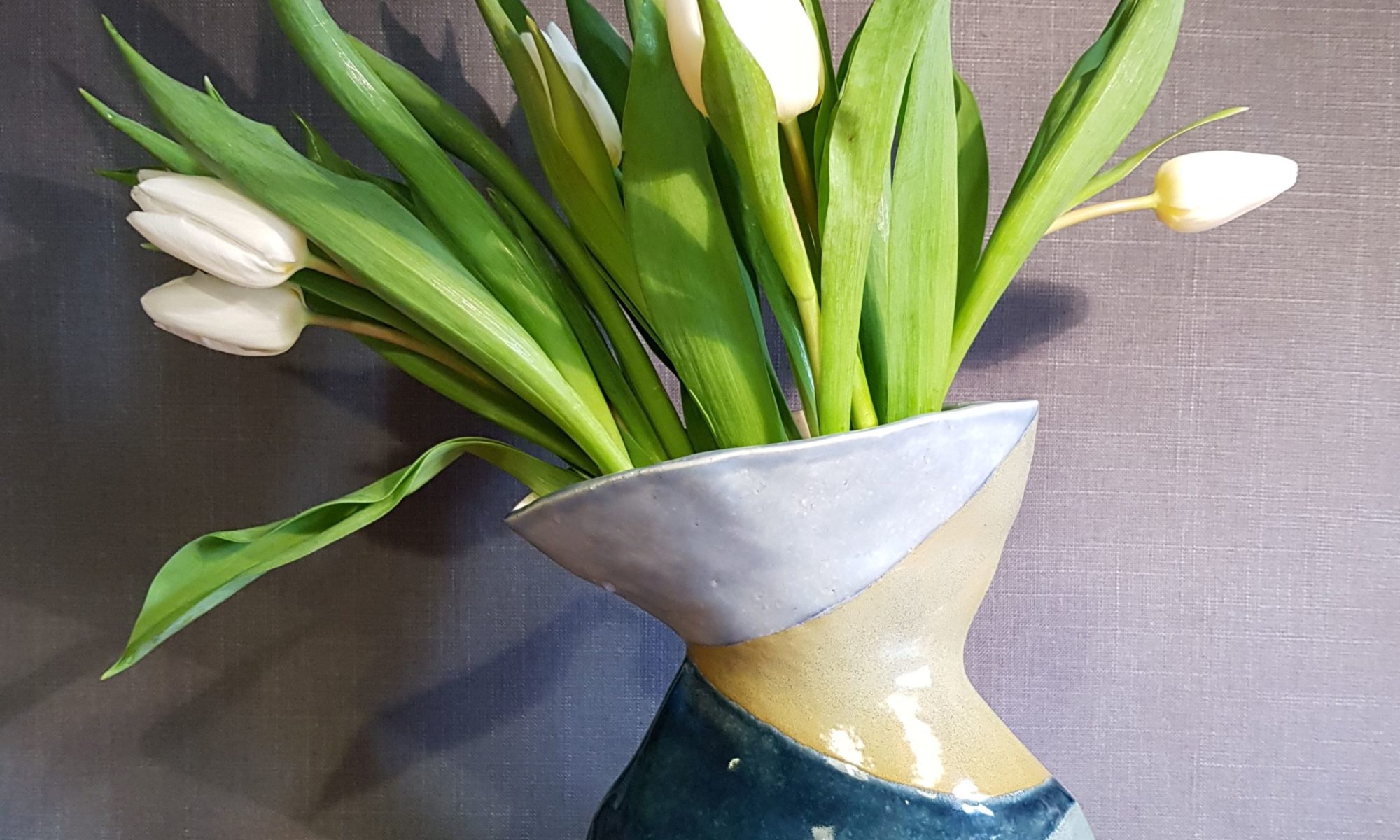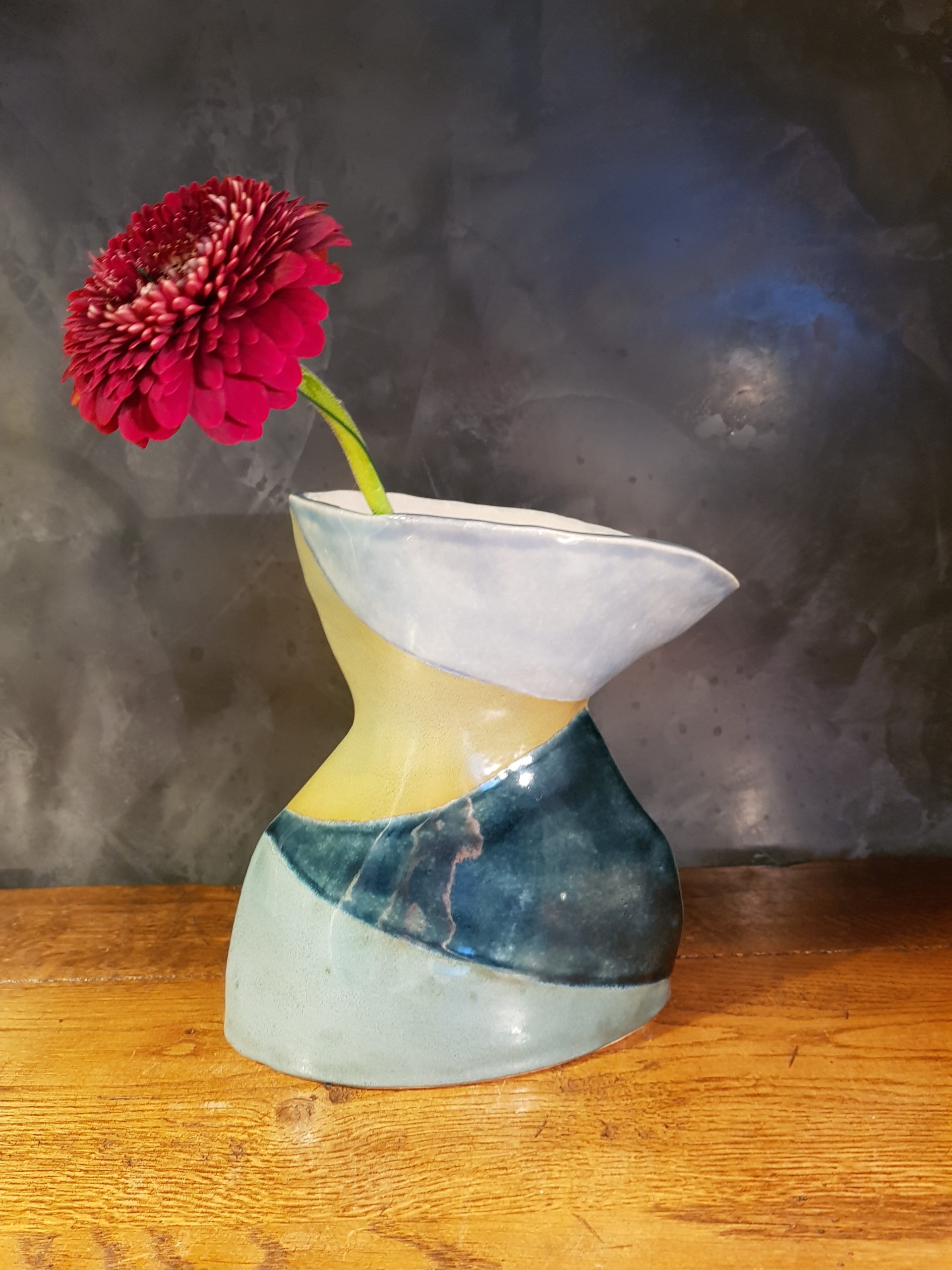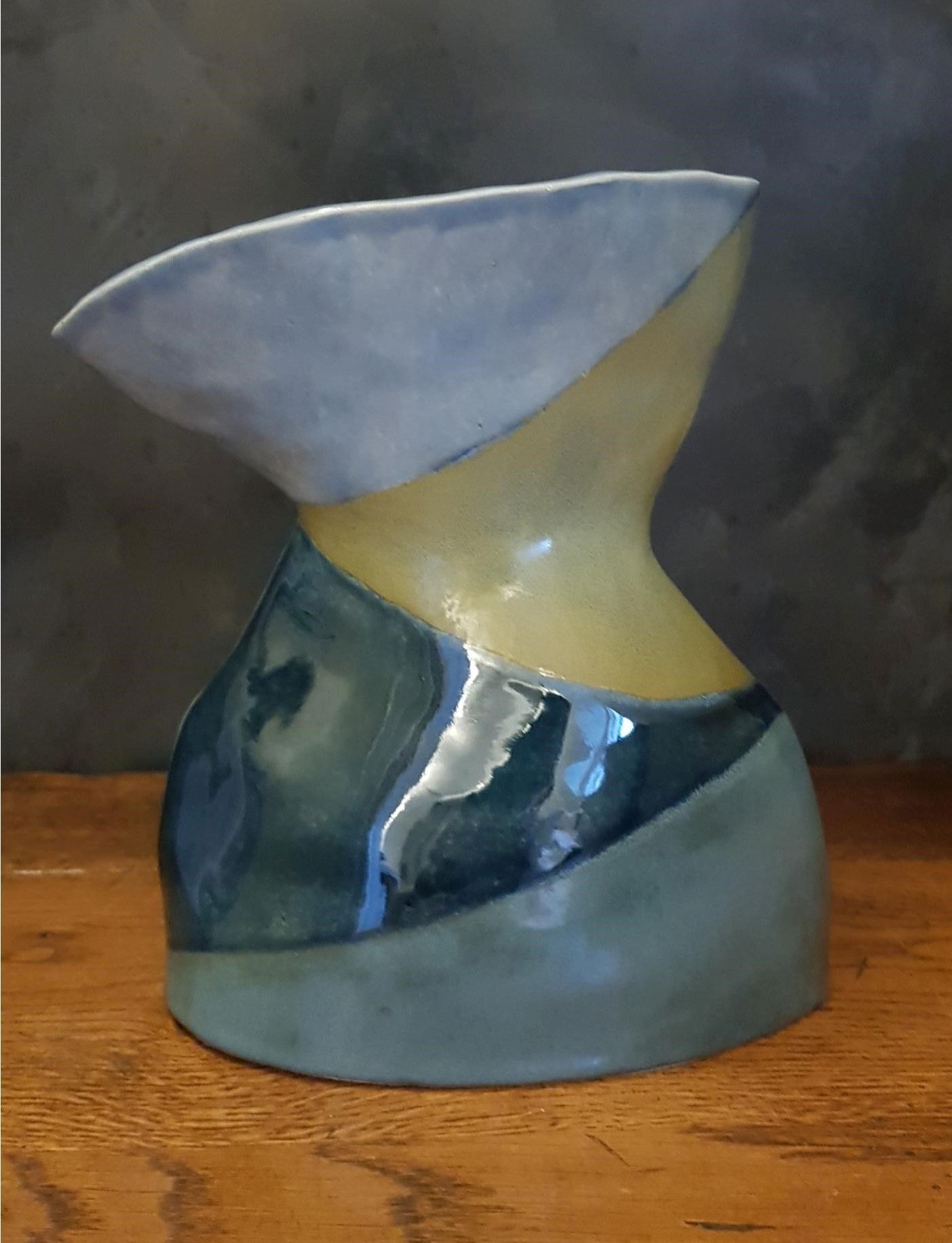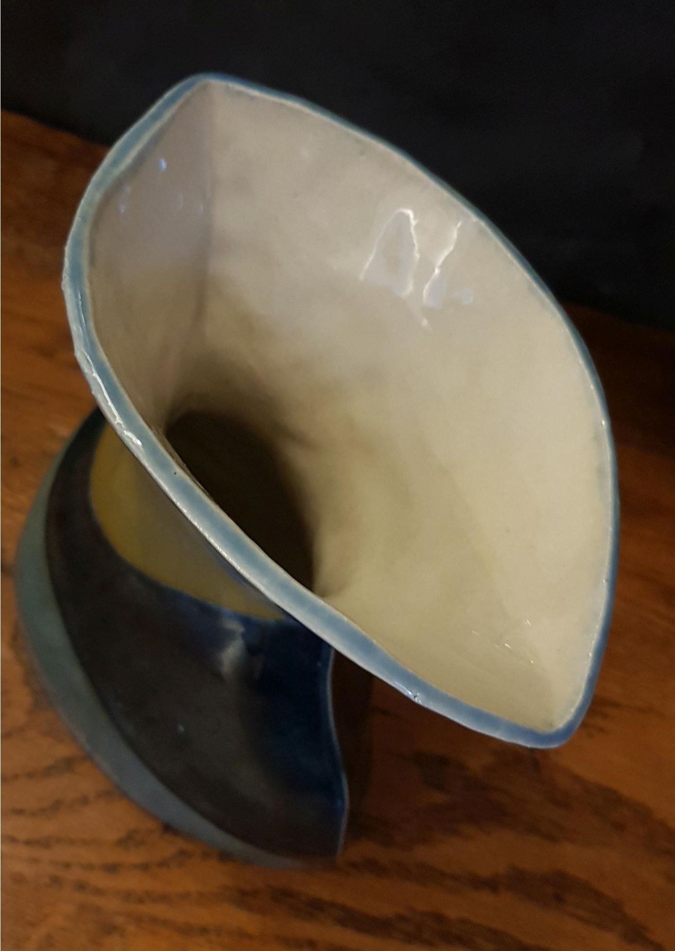 Annamirl habe ich in Aufbautechnik mit weißem, feinkörnigem Ton gefertigt. Sie ist innen und außen voll glasiert und bei 1240 Grad zu Steinzeug gebrannt.