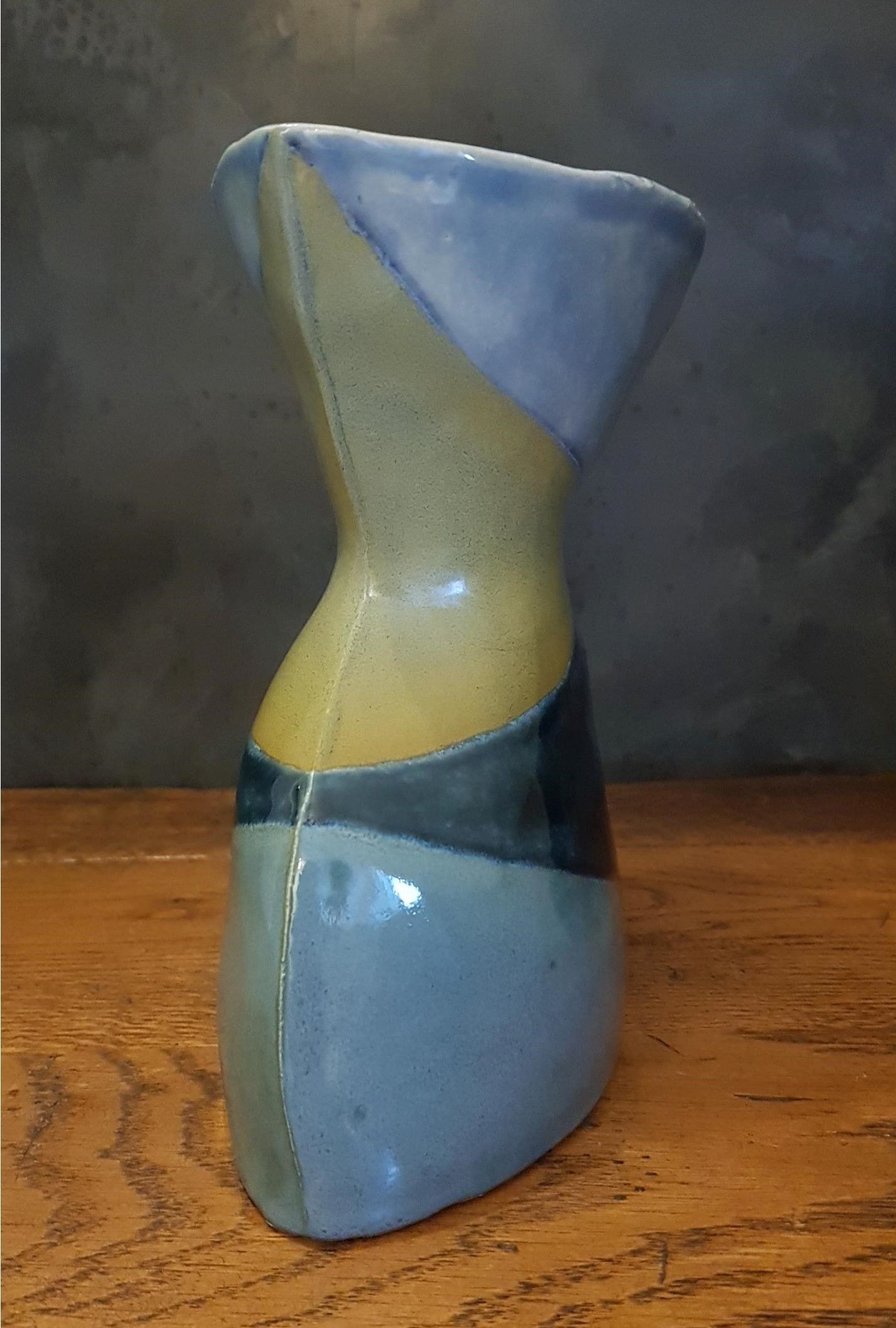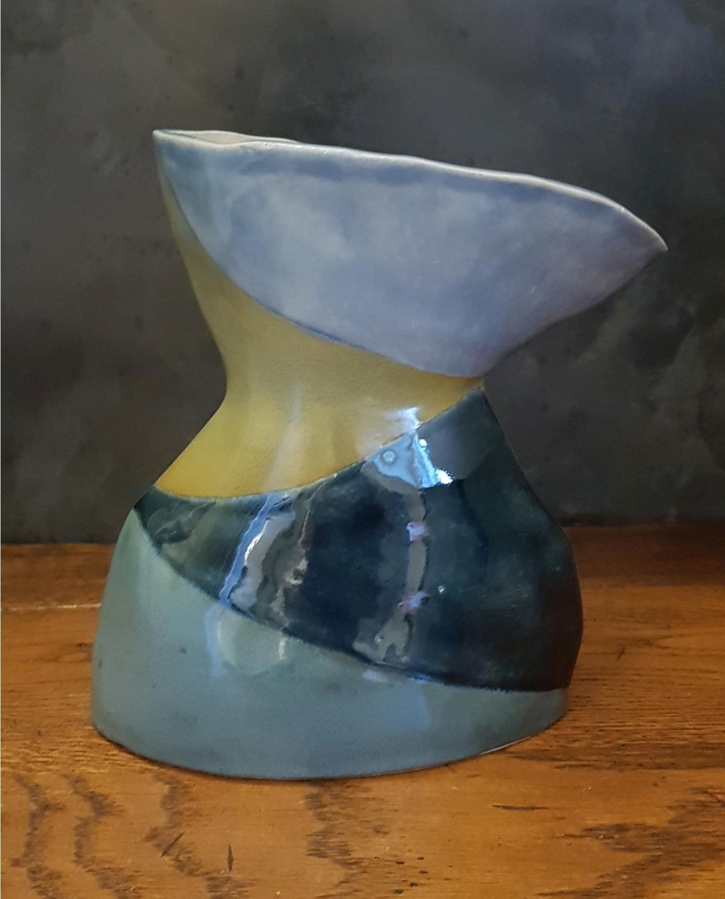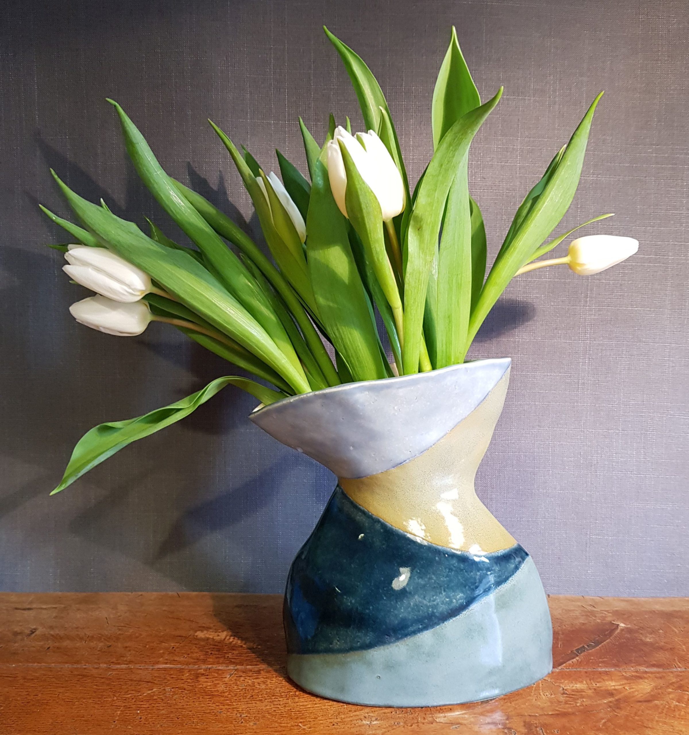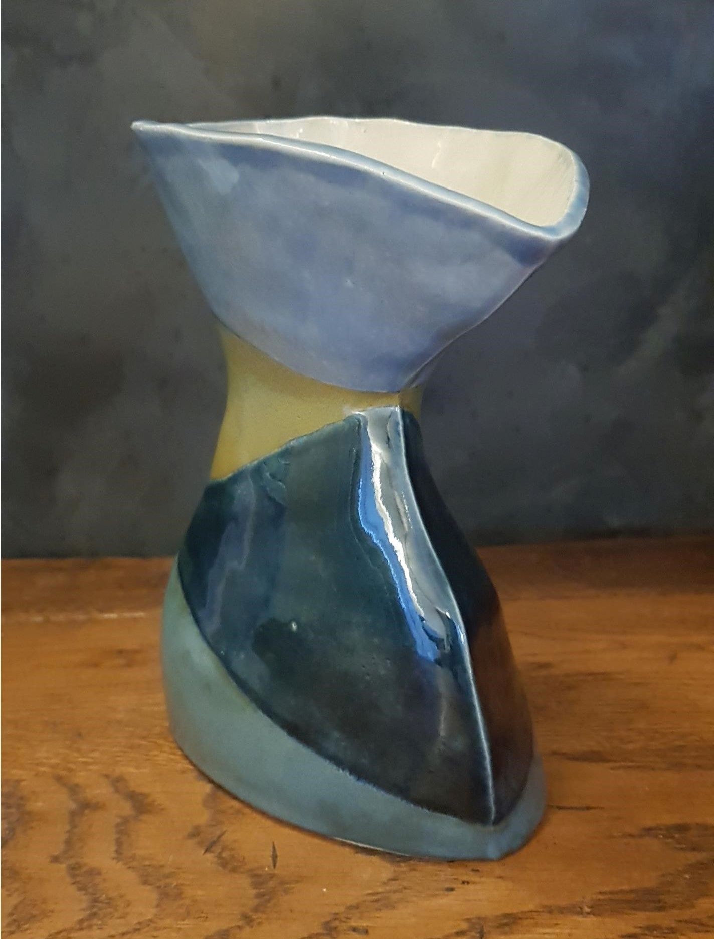 Annamirl habe ich in Aufbautechnik mit weißem, feinkörnigem Ton gefertigt. Sie ist innen und außen voll glasiert und bei 1240 Grad zu Steinzeug gebrannt.